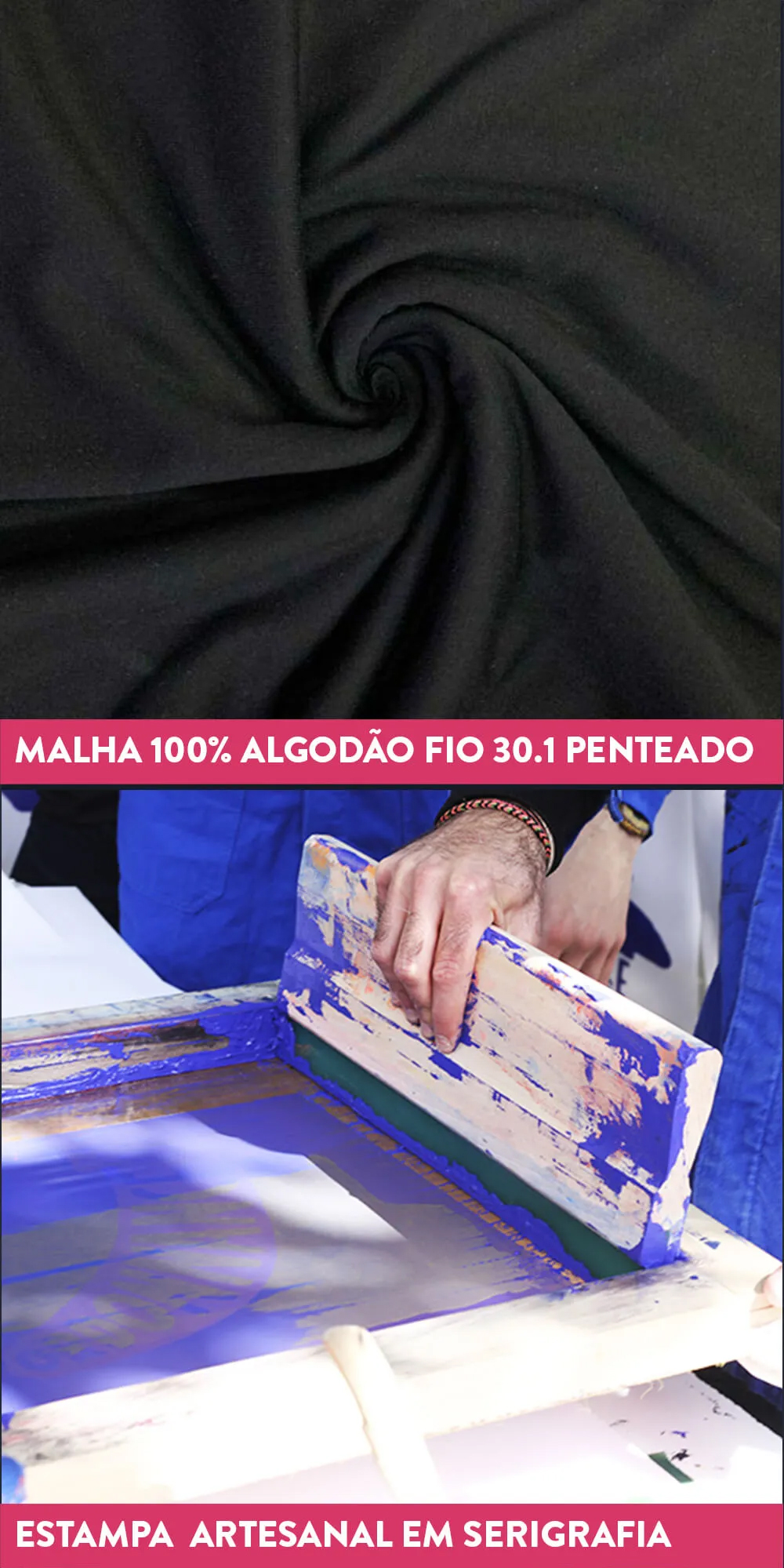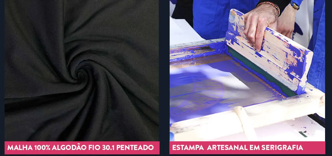 Composição: Malha 100% algodão fio 30.1, gramatura 160g